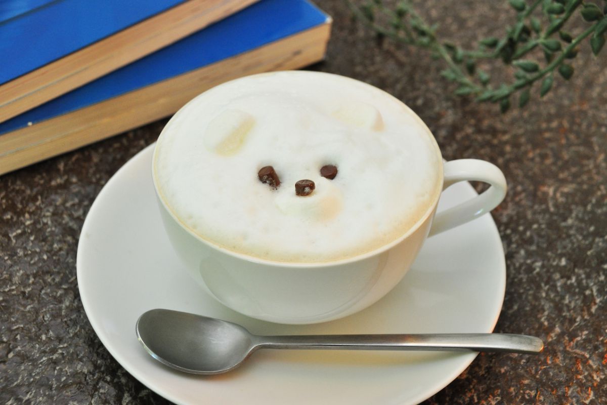 自家焙煎のこだわり豆を使ったアレンジコーヒー(各550円)。カフェラテ、バニララテ、キャラメルラテ、ヘーゼルナッツラテ、チャイラテの5種類あり、どれもホイップクリームたっぷり。マシュマロの耳、チョコレートの目鼻でホカホカの白熊がキュートに誕生しています。