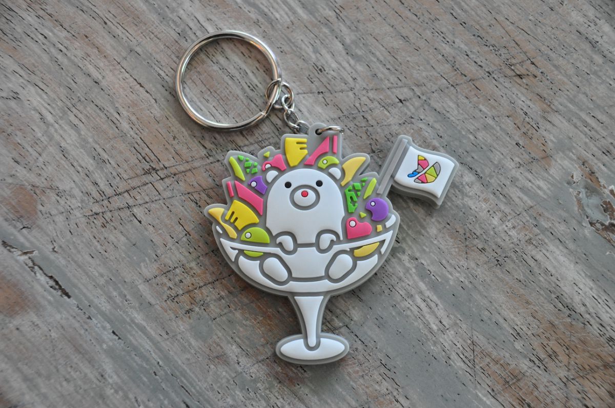 かわいい白熊をいただいたら、お土産にはフルーツ温泉しろくまの湯をモチーフにしたキーホルダー(648円)をどうぞ。