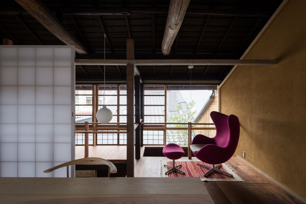 この建物、もともとは東海道五十三次の宿場町の面影を残す「木賃宿(きちんやど)」。旅人が素泊まりするための簡素な宿だったそう。2016年、地元の工務店が地域のコミュニティースペースとして改修。大正時代の建築物の風情を大工の技により開放的に演出した新旧の織り交ぜ方が魅力的と評価され、2018年グッドデザイン賞も受賞しています。