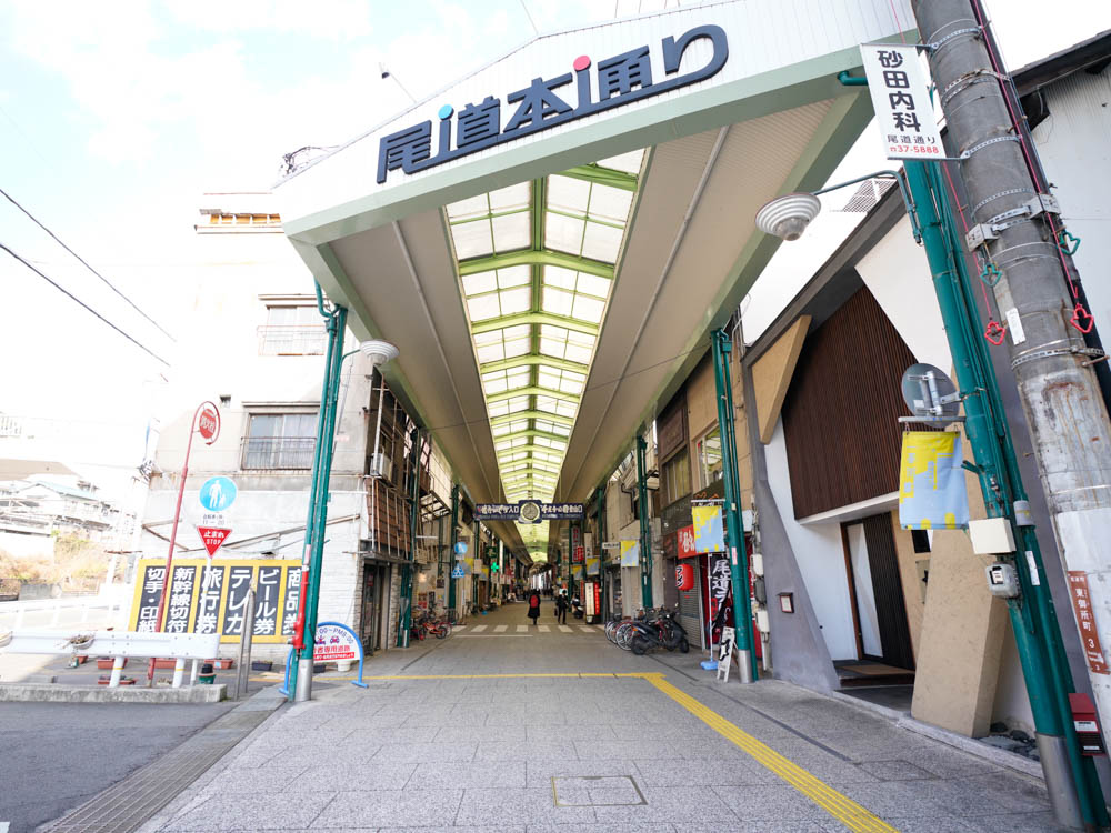 尾道商店街の小路に「クレープ」の文字ののぼりが。小さなお店には、お昼過ぎには行列ができていることもしばしば。『店主は映えないけど、商品は映える店』と謳っているというこちらのお店は、店主さんが独学でクレープについて学び、4年前にオープンしたのだそう。