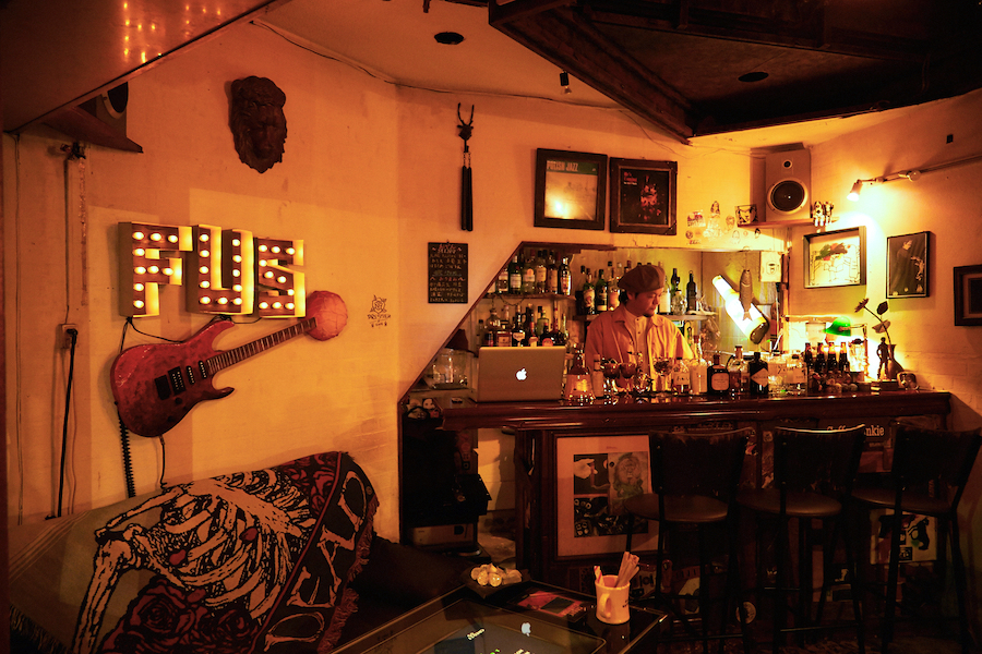 マスターは大家を務めるかなた狼氏のバンド仲間であり、映画『ニワトリ★スター』内の楽曲も手掛けているそう。撮影時のギターをディスプレイするなど、店内には映画で使用したユニークなアイテムが満載。