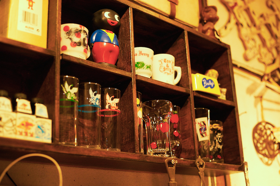 アンティークマニアの店主が趣味で集めたさまざまな骨董品や雑貨を扱う「ツギハギ堂」。おいしいお酒を飲みながら、レトロでキッチュなアイテムを観賞し、購入することができます。