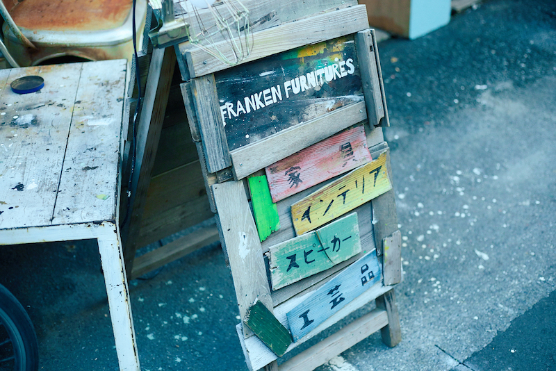自動車部品のエンジニア経験のある店主がスタートした「FRANKEN FURNITURES」。廃材や端材をミックスし、家具や雑貨に再び命を吹き込むフランケンスタイルがコンセプト。オーダーメイド家具やオリジナル雑貨の製作のほか、ホテルなどのリノベーションも行っています。