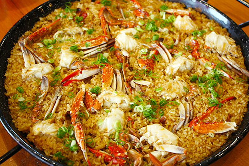 「蟳米糕(シャンシュンミーガオ)」は、ワタリガニの出汁をたっぷりと吸ったもち米がたまらない台湾版パエリア。ワタリガニがどどーんと豪快にのっています。