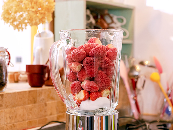 そのヒミツはつぶつぶの果肉感。シェイク1杯に約2/3パック分のイチゴが入っています。甘みと酸味のバランスが良い「紅ほっぺ」を使うことで、濃厚でありながらスッキリとした後味の「いちごシェイク」ができるのだそう。