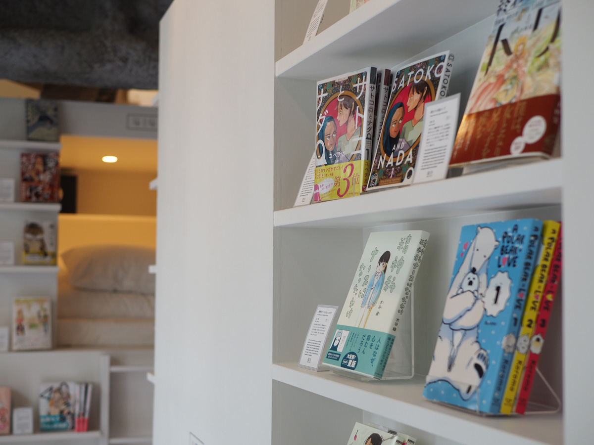 何を読もうか迷ってしまう人は、フロントで相談してみて。キュレーターが直接アドバイスしてくれます。マンガを通したコミュニケーションもこのホテルのコンセプトのひとつ。男女フロアの行き来はできませんが、フロントでどんなマンガが読みたいかを伝えて、それが別フロアにあれば、取ってきてくれるそうです。