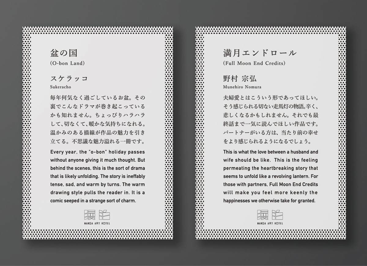すべての作品におすすめコメント(日本語&英語)がついているのも楽しいところ。キュレーターの思いが伝わってきます。5000冊のうち約800冊は、英語訳された日本のマンガ。読んだことのある作品の英語版を試してみるのも、新しい発見がありそうです。気に入ったマンガがあれば、フロントで購入することもできるというから驚き。