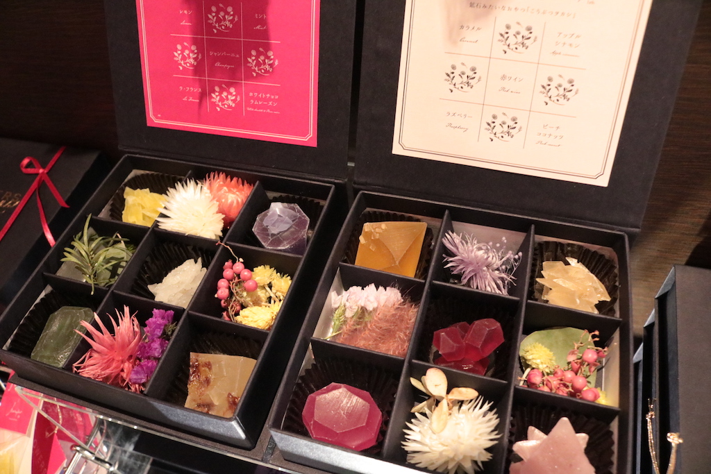 まずは、鉱石みたいなお菓子「こうぶつヲカシ(箱型)」2500円。福岡ではとても人気で、都内ではなかなか手に入らないそうです。