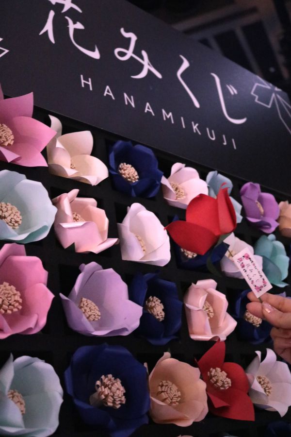 好きな花の色を選んで運勢を占う“花みくじ”(1回500円)もカラフルでインスタ映えエリア。さらに、食とアートが融合する体験型レストラン『TREE』とのストリートショップでは、VRやプロジェクションマッピング、音楽、照明を掛け合わせた食体験でオリジナルスイーツが味わえます。(スイーツ付1500円、所要時間約30分)ができます。これは体験した人にしか分からない不思議な世界。桜をモチーフにした和物のクッキーガシャ(500円)も楽しんで。