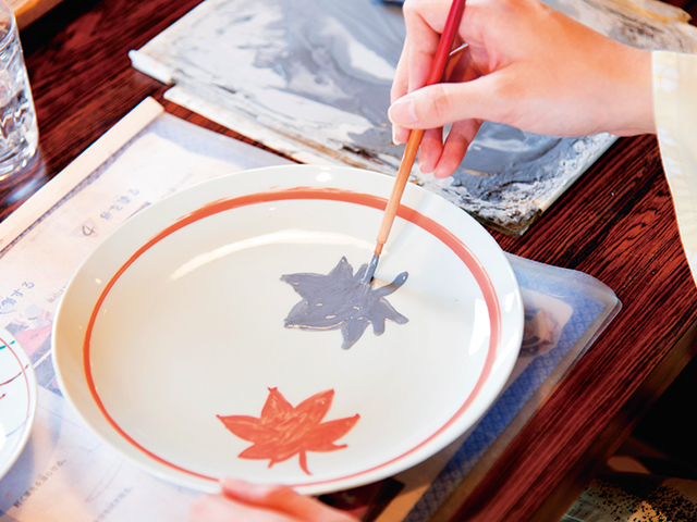 九谷焼の窯跡があり、さまざまな企画展が開催されている展示館。本格的な九谷焼の絵付け体験ができるので、旅の思い出作りにもピッタリです。できあがりを想像しながら、皿やマグカップに絵を描いていく作業は、なかなか楽しいもの。ロクロを回してお茶碗などを作る体験もあるので、お好みで挑戦してみましょう。