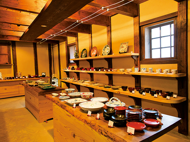 老舗宿直営のセレクトショップで、センスの良い九谷焼と山中漆器がそろっています。普段使いできる器は、シンプルながら鮮やかな色使いだったり、キュートな絵柄が描かれていたり、とってもおしゃれ。どれにしようか迷うのも楽しみのひとつです。明治期の土蔵を改築した店構えもすてきなので、じっくり買い物を楽しみましょう。