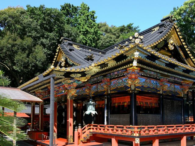 イチゴ狩りのあとは、久能山の石造りの階段を登って、駿河湾の絶景を眺めましょう。その山頂近くにあるのは、徳川家康公を御祭神としていて、国宝にも指定されている久能山東照宮。全国の東照宮の原型とされる社殿は、極彩色の華やかさはもちろん、繊細な細工も見事です。絢爛豪華なたたずまいは、見入ってしまうほど。県内有数のパワースポットなので、あふれるパワーをたっぷり浴びてきましょう。