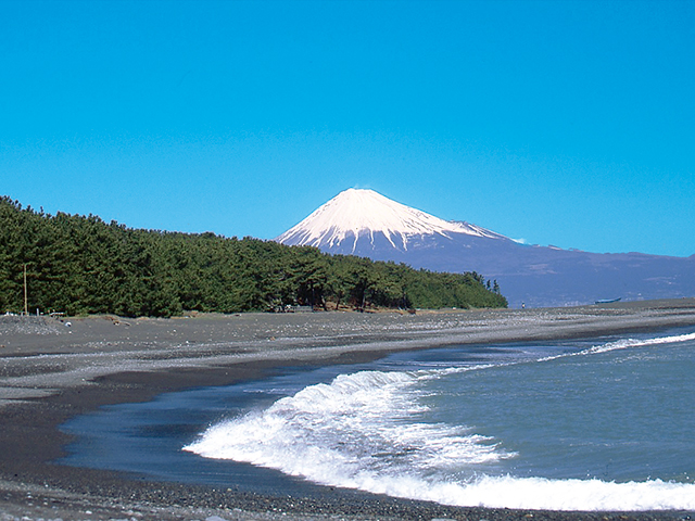 歌川広重の浮世絵で知られ、富士山の世界文化遺産登録の構成資産に認められた富士山の絶景スポットです。約7kmの海岸線に並ぶ松林と、その向こうにそびえる富士の姿は圧倒的。広重もこの景色を見ていたのだと思うと、なんだか不思議な気がしてきませんか?