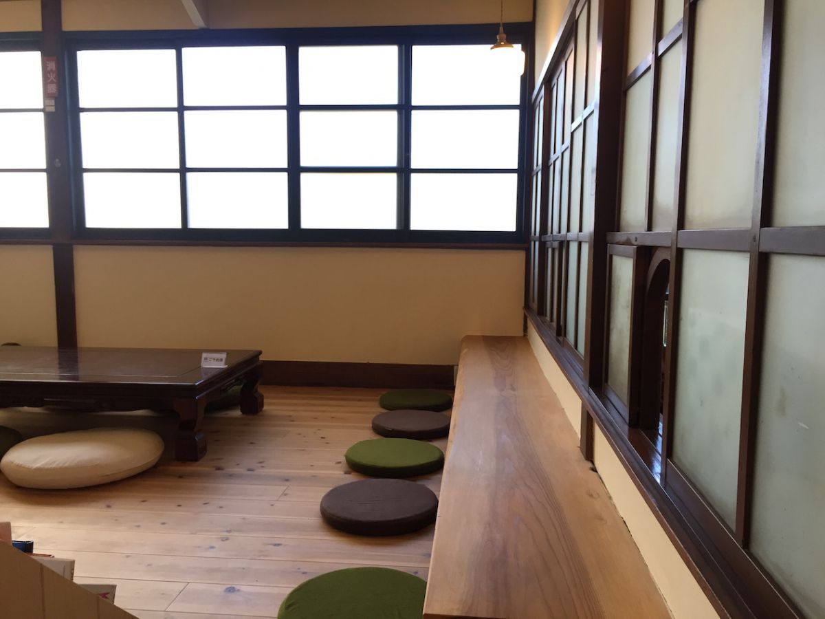 そこから奥の土間スペースには、ソファとテーブルを配したカフェ、そして受付カウンターの奥は、靴を脱いでくつろげるフローリングのカフェスペースとなっています。