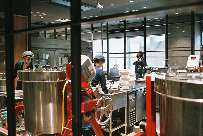 「フーチョコレーターズ」の工房はガラスで囲まれていて、一周をグルッと周りながら、カカオ豆の焙煎からチョコレートの製造・包装まで、すべての工程を自由に見学することができます。