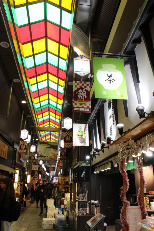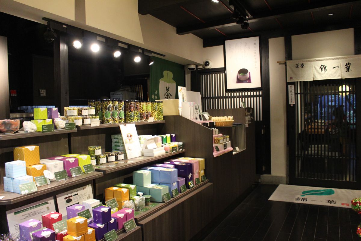 お店は「京都の台所」と呼ばれる錦市場の中にあるので、お土産探しにもぴったり。乾物、お茶、生麩、魚、スイーツなどを扱う新旧さまざまなお店が並んでいます。食べ歩きのメニューも充実しているので、そぞろ歩きも楽しいですよ。
