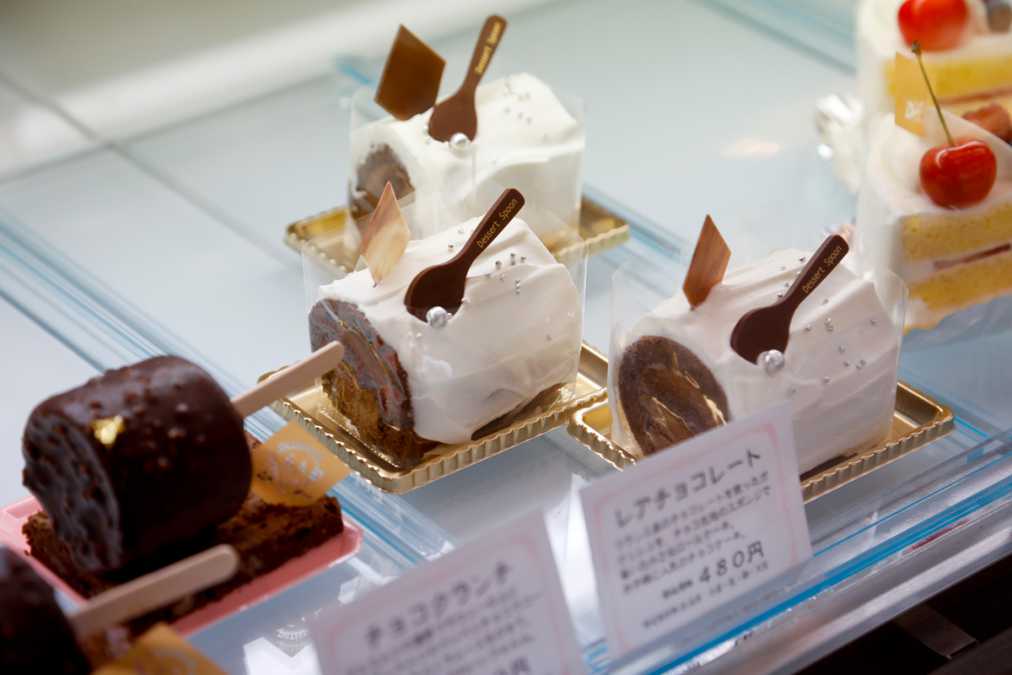 ほかにも、ショーケースには常時約25種類ものケーキがスタンバイ。スプーン型のチョコレートがのった「レアチョコレート」や、アイスの棒が刺さった「チョコクランチ」など、乙女心くすぐるかわいいモチーフのケーキが並べられています。