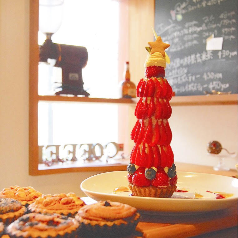 常時20種ほどのタルトが揃う「タルト専門店 NOYU(ノユ)」。冬のオススメは、やっぱりイチゴ!時期によって「あまおう」や佐賀の新ブランド「いちごさん」などを使ったイチゴタルトが並びます。例年、2月から5月にかけて登場するタワー状の映え映えタルト「オニモリ博多あまおうタワータルト」(要予約)も忘れずにチェックを。