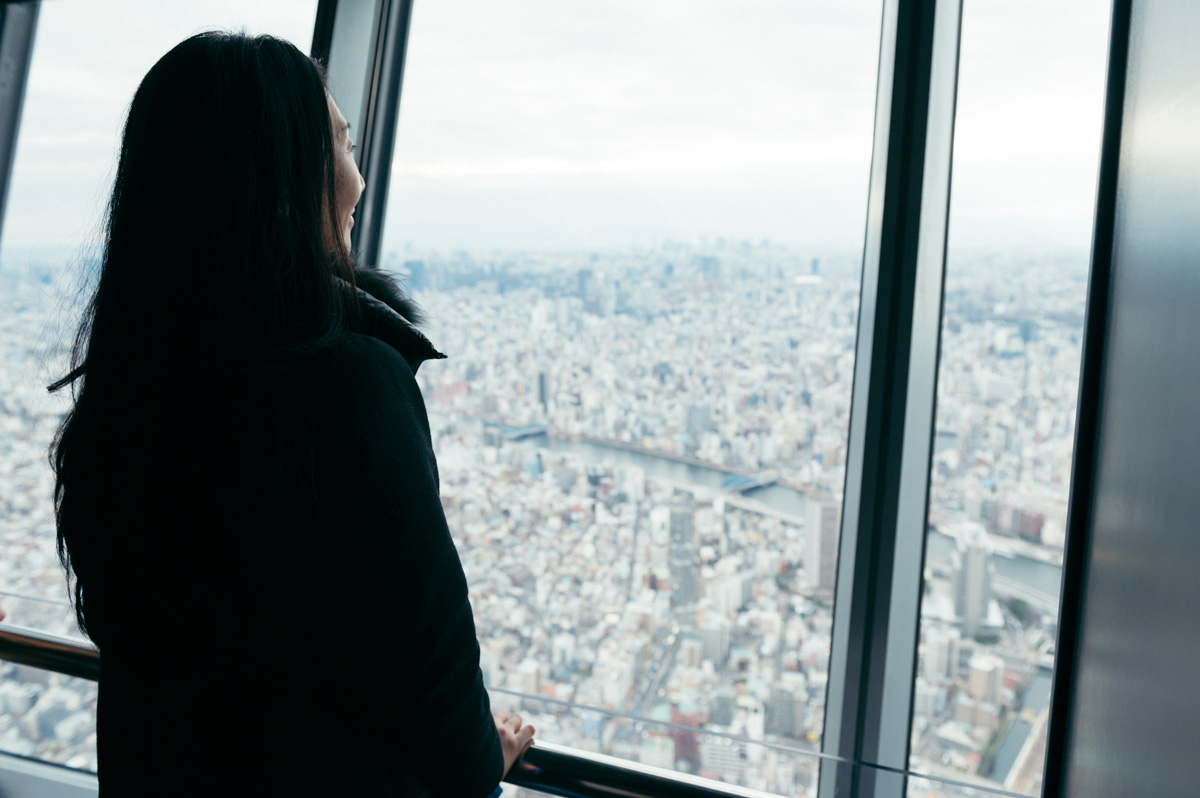 まずは、宇宙元旦の開運キーワードである「スピード」「頂上」に注目。高速エレベーターで上昇して、高い場所へと上がることが、ひとつ目の開運アクションです。そこで、Keikoさんと一緒にやってきたのは、東京スカイツリー®。