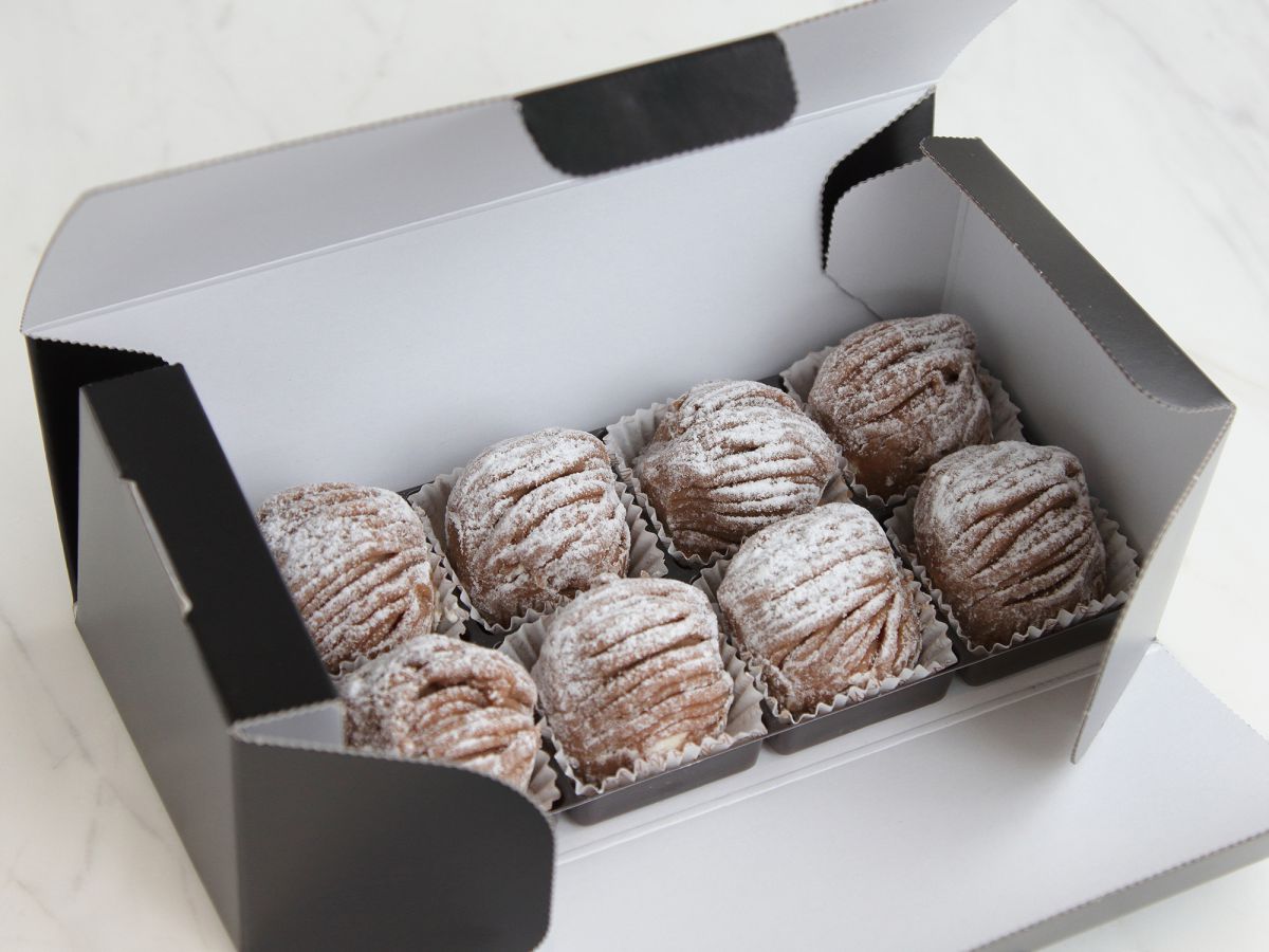 1階にはサロンと同じモンブランが買えるテイクアウト専門の「アンジェリーナ ケーキショップ」もあり。こちらでは日本限定の「プチモンブラン(8個入り)」(1188円)も販売していて、手土産にぴったりです。プチサイズでも、濃厚マロン&無糖クリーム&メレンゲの三重奏はしっかり楽しめますよ。