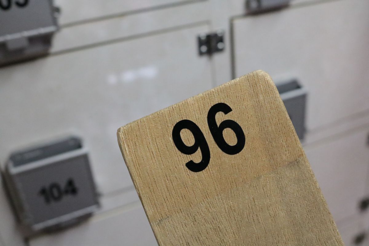 下駄箱に靴を預けて館内へ。昔ながらの木札に「銭湯に来た~」と実感。