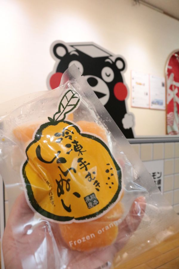 熊本の特産品を使ったドリンクやアイスなどが販売されているので、お風呂上がりにぜひ。なかでもこちらの「冷凍手むきしらぬい」350円は、凍ったしらぬい(でこぽん)が5~6房(大きさによって変わります)がパックされたもの。少し溶かしてシャリシャリした食感を味わうのがおすすめです。どこか懐かしい優しい甘さにホッとできますよ。