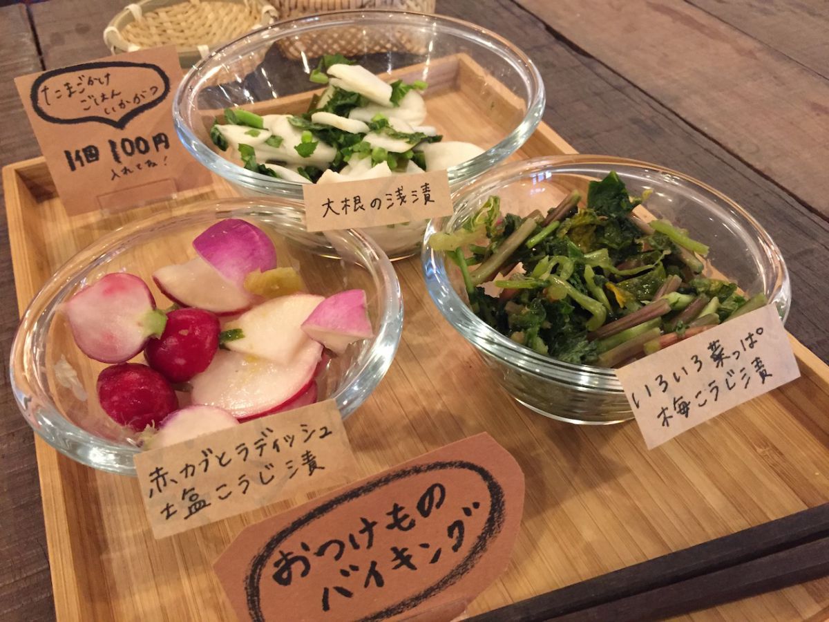 カウンターに並べられた「おつけものバイキング」は、ランチをオーダーすれば、お好みのものを選ぶことができます。そのおいしさは「自宅でも作ってみたい!」と思うもの揃い。丁寧に作られた料理に、お腹も心も満たされます。