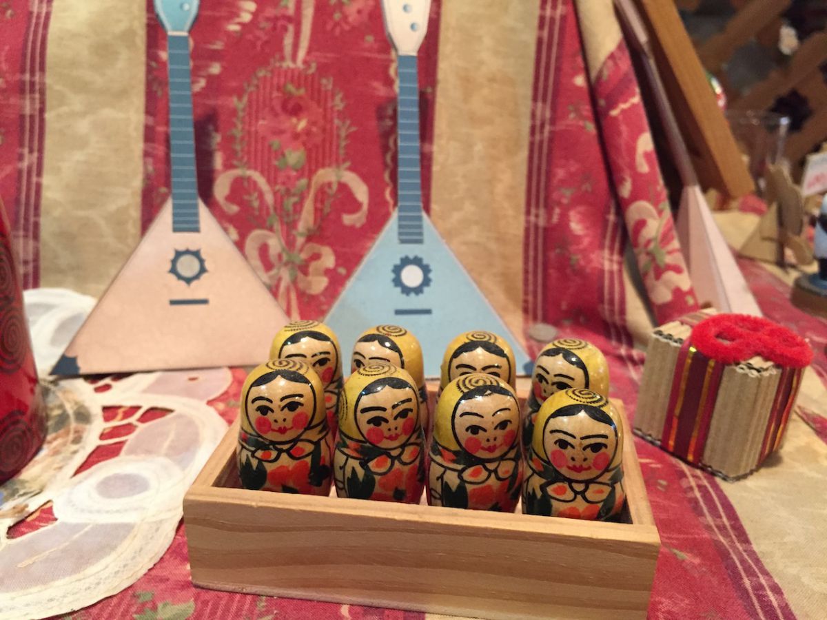 エレベーターで3階に降り立ち扉を開けると、かわいいマトリョーシカの人形や、チェブラーシカがお出迎え。