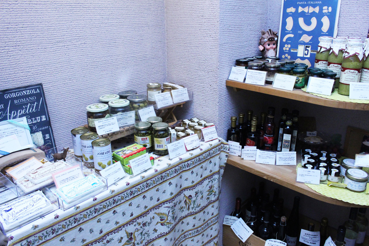 お店の一角にはパーティーなどでチーズと一緒に出したいおつまみやワインが。こちらをもとに、チーズを探してみるのもいいかもしれません。