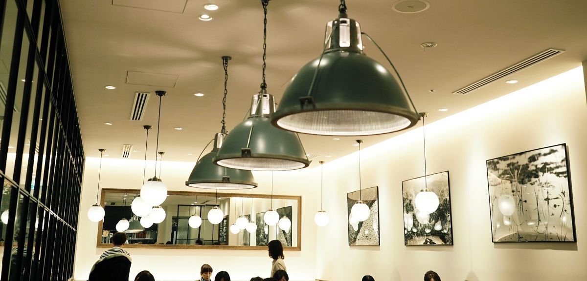 和洋折衷をテーマにした店内は、椅子やテーブル、ライトに至るまでがこだわってセレクトされていて、とてもスタイリッシュ。地下でありながらも開放感に溢れていて、いつまでも過ごしていたくなる居心地のよさです。