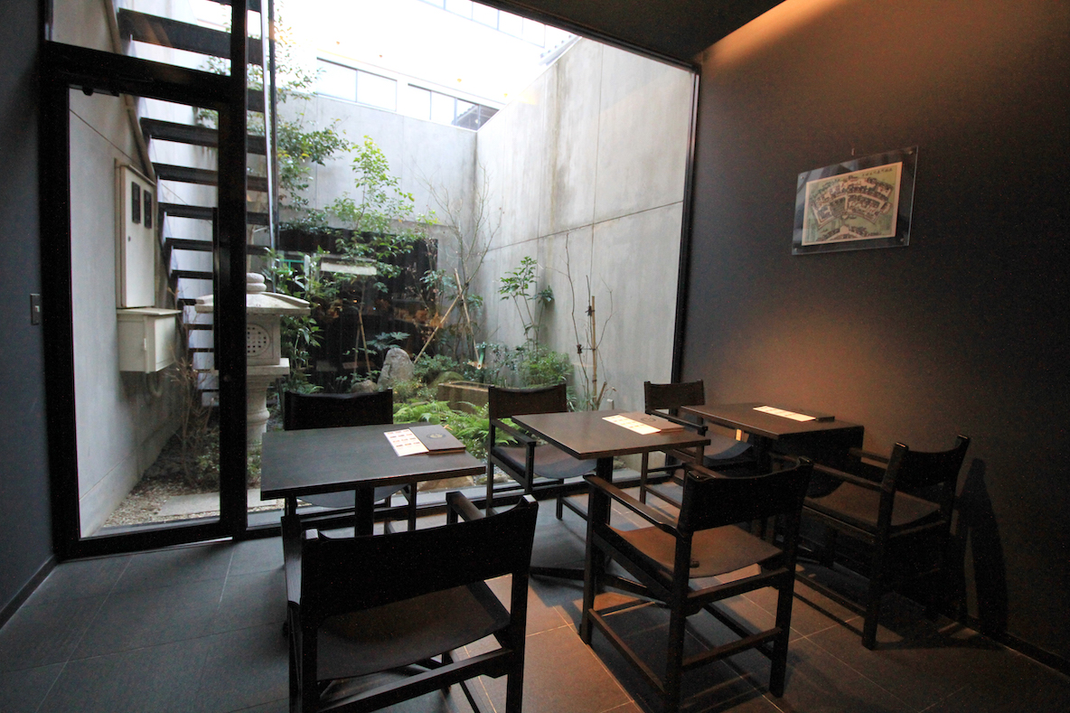 店内奥には小さな庭を眺めながらくつろげるイートインスペースもあります。