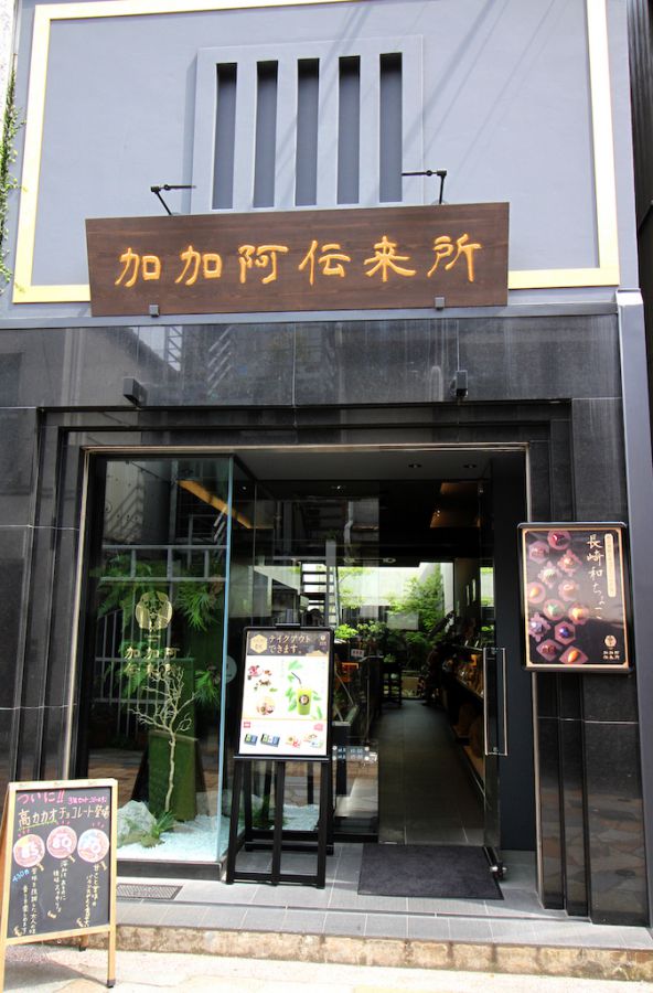 長崎の観光名所眼鏡橋などにも近く、観光の合間に立ち寄りやすい「可可阿伝来所(かかおでんらいじょ)」。一般的なチョコレートのイメージをくつがえすような、和にこだわったひと味違うチョコレートが楽しめるチョコレート専門店です。江戸時代、出島のオランダ商人によって日本に持ち込まれ、全国に広がったという長崎のチョコレート伝来の歴史を感じてみてください。