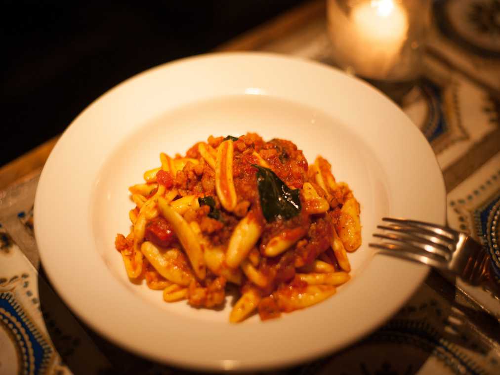 スパイシーに味付けされた豚トロと、肉厚なパスタが絡んだ「パルマ産豚トロとフレッシュバジルのアラビアータ」は、食べごたえのある一品。ほんのりと香るバジルが、食欲をそそります。