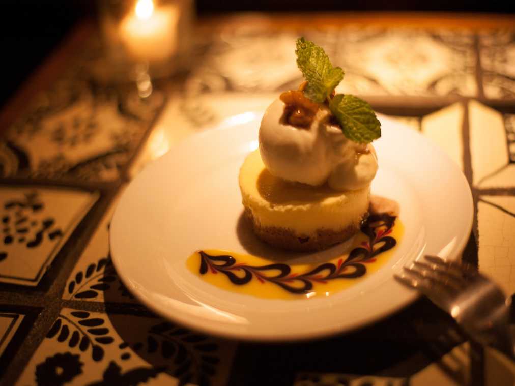 食後にぜひ味わってほしいのが、クリームチーズと生クリームがふわとろ食感を演出する「チーズケーキ」。プレートに描かれた模様も可愛らしく、思わず写真に収めたくなります。