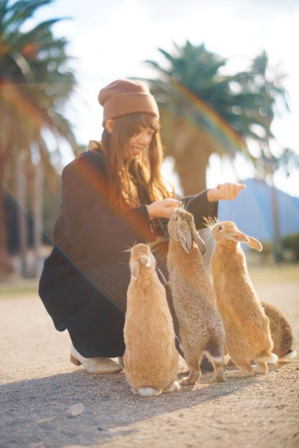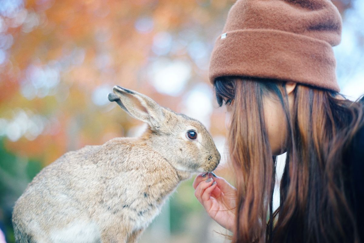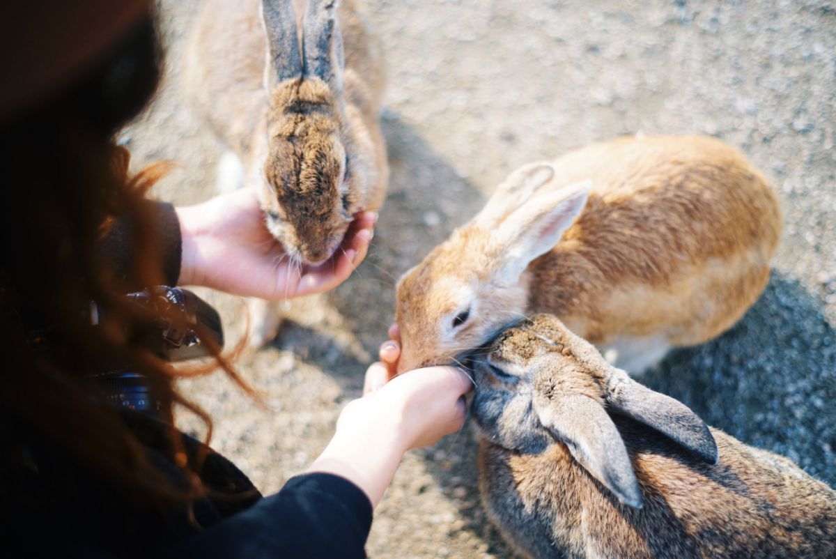 事前にフェリーの発着所で買ったうさぎの餌をあげると、たくさんのうさぎが近寄ってきてくれました。