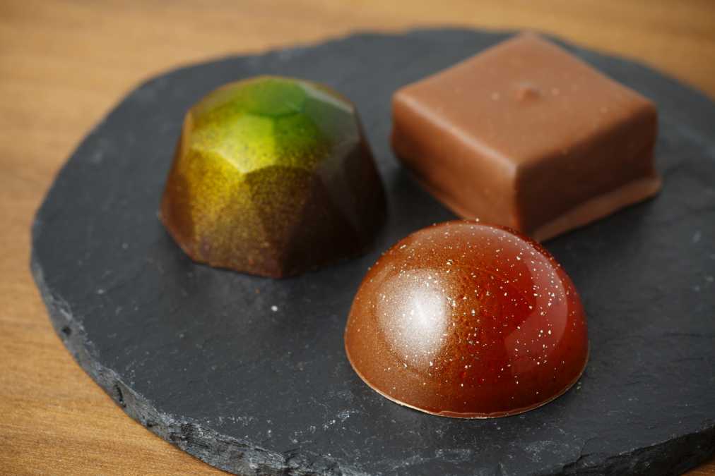 ひとくちほおばると、なめらかな舌触りと同時に2層の素材の異なる食感や味わいが広がったり、エキゾチックなフルーツの香りが弾けたり……。余韻も豊かで、しばし口福のひととき。ビジュアルも美しく、既存のショコラのイメージを鮮やかに覆してくれます。