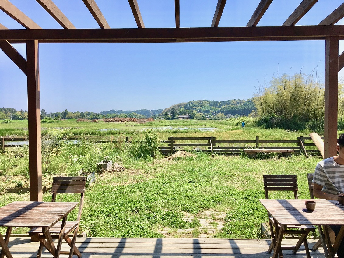 テラス席からの眺めがとっても気持ちいい!緑がたくさんの、いすみ市の豊かな田園風景が眺められます。自然の中で頂くご飯は心も洗われること間違いなし。