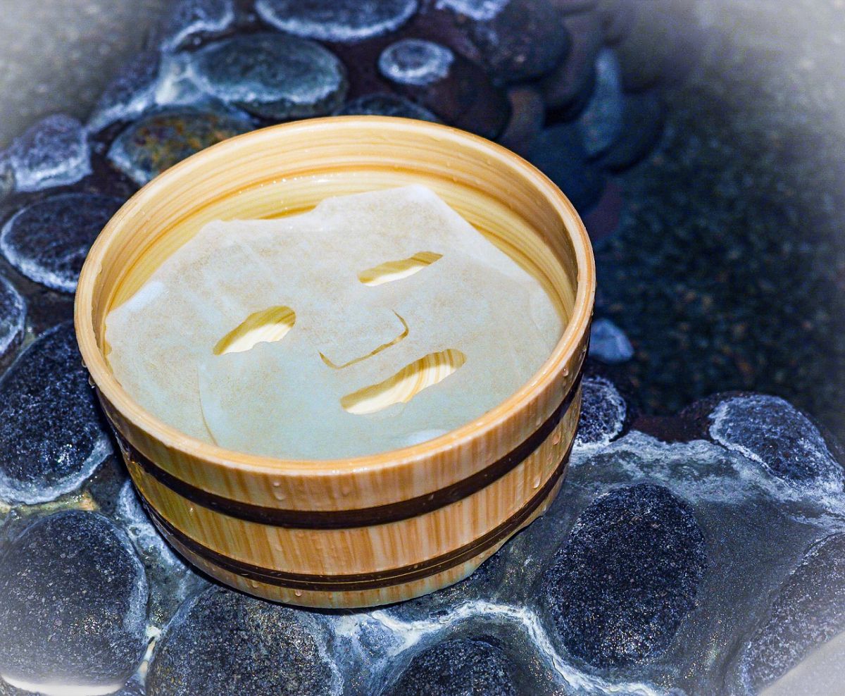 源泉を洗面器にくんでシートマスクを浸して顔の上に。