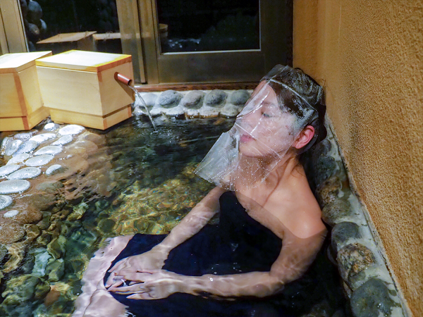 さらに温泉の蒸気をつかって肌をしっとりとさせたい人には、カバーを。