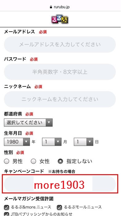 Step2.キャンペーンコード欄に『more1903』を入力し、アカウント登録を行う。これでキャンペーンに応募完了です!