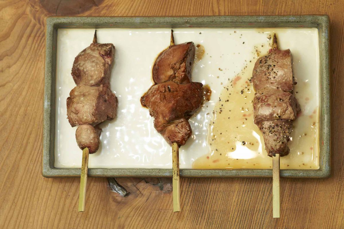 さぁ、やって参りました。前に一度訪れた時に大ファンになり、今回取材させてもらうきっかけになった「れば」3種。「レバー」ではなく「れば」という表記もなんかいい。左から順に塩、タレ、ごま油(各130円)。
