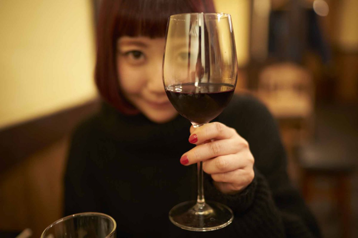 「アボカドとトマトの組み合わせ見たらワイン頼みたくなっちゃった♡」とここへ来て赤ワイン(380円)を注文する小鳥遊。焼肉や焼き鳥に赤ワインを合わせるの、大好きです。