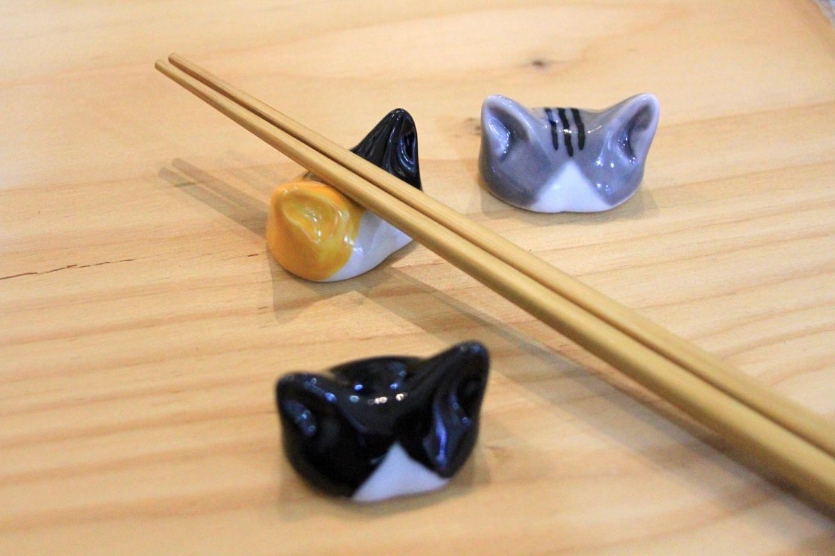 波佐見の窯元に依頼して、オリジナルで焼いてもらっているという箸置き1個1200円。猫の耳だけというのが何ともユニークで思わず笑顔になります。