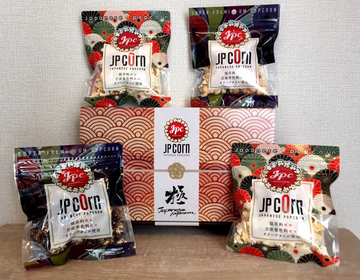 和柄のパッケージがかわいいこちらは「極」1個324円。ポップコーンとは思えないようなシックで大人なパッケージは、おみやげにしたら喜ばれそう。