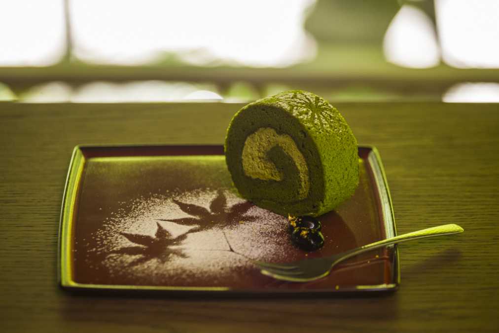 庭園でおなじみのもみじの葉をモチーフにした「宇治抹茶のロールケーキ」(600円)は、数量限定の人気メニュー。金粉がふりかけられた黒豆がお口直しに添えられ、飽きることなくぺろりと完食できちゃいます。洋菓子はすべて、鎌倉小町通りの銘店「パティスリー雪乃下」が監修したオリジナルスイーツ。「抹茶と季節の生菓子」(1000円)などの和菓子は、創業100年を超える西鎌倉の老舗「茶の子」のお菓子です。