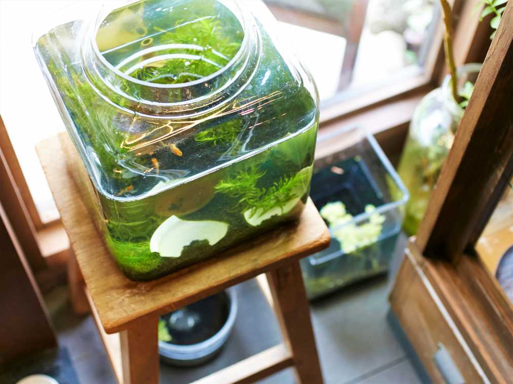茶寮の最寄り駅は湘南モノレールの西鎌倉駅。駅舎を出て県道304号線沿いに歩くと2分ほどで到着です。入口では、可愛らしいメダカも出迎えてくれますよ。