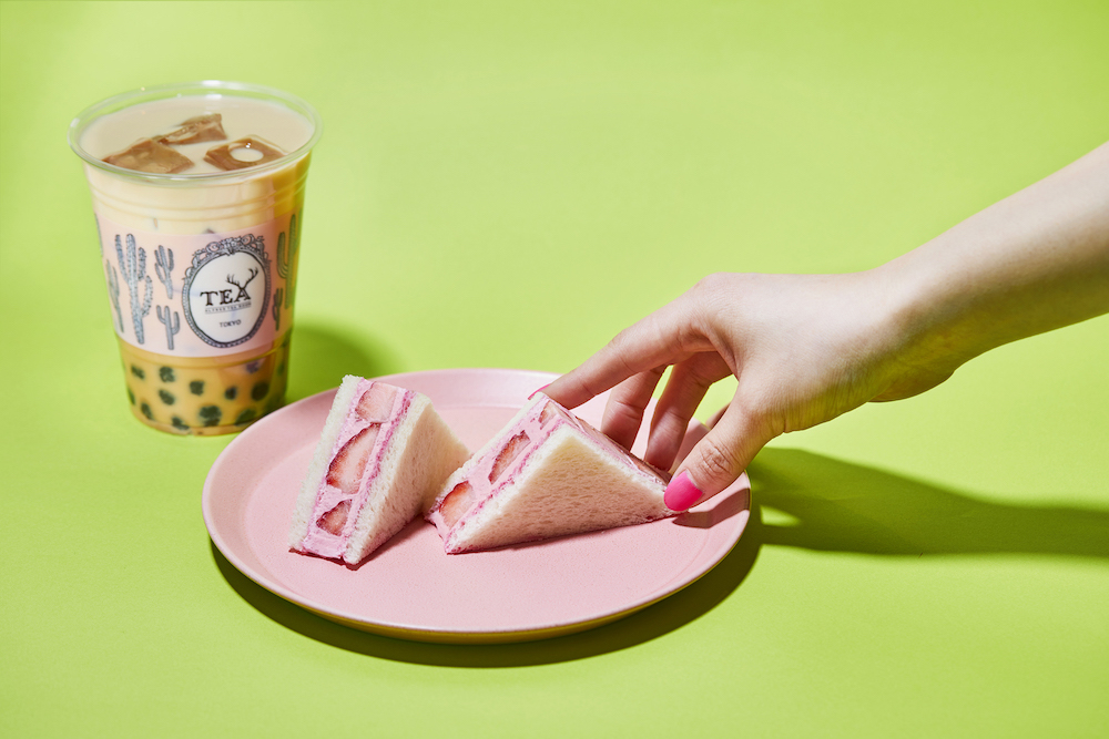 ドリンクと一緒に楽しみたいスイーツは、「いちごのソイティラミス」480円と「いちごのフルーツサンド(豆乳パン)」480円の2種類。