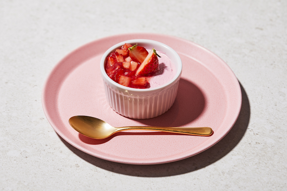 デザートメニューは、いちごを使った美しいヴィーガンスイーツ