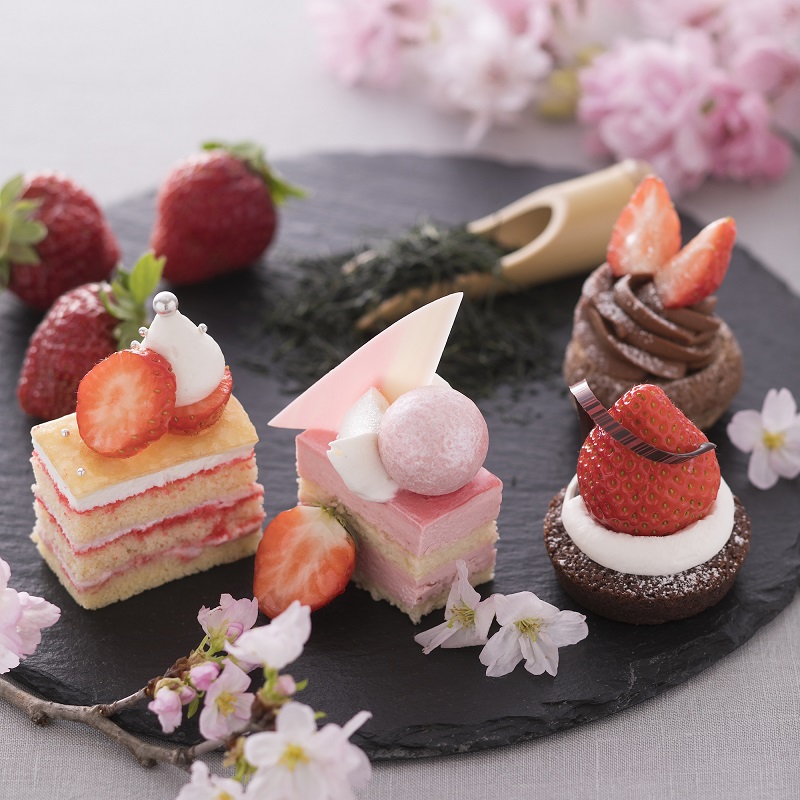 同ホテル6階の「ザ・ラウンジ」では、「さくら」をテーマに、あまおうと八女茶を贅沢に使った期間限定のアフタヌーンティーセットが提供され、「あまおう苺と桜のモンブラン」、「八女茶と桜のロールケーキ」など、春にぴったりのスイーツが揃います。