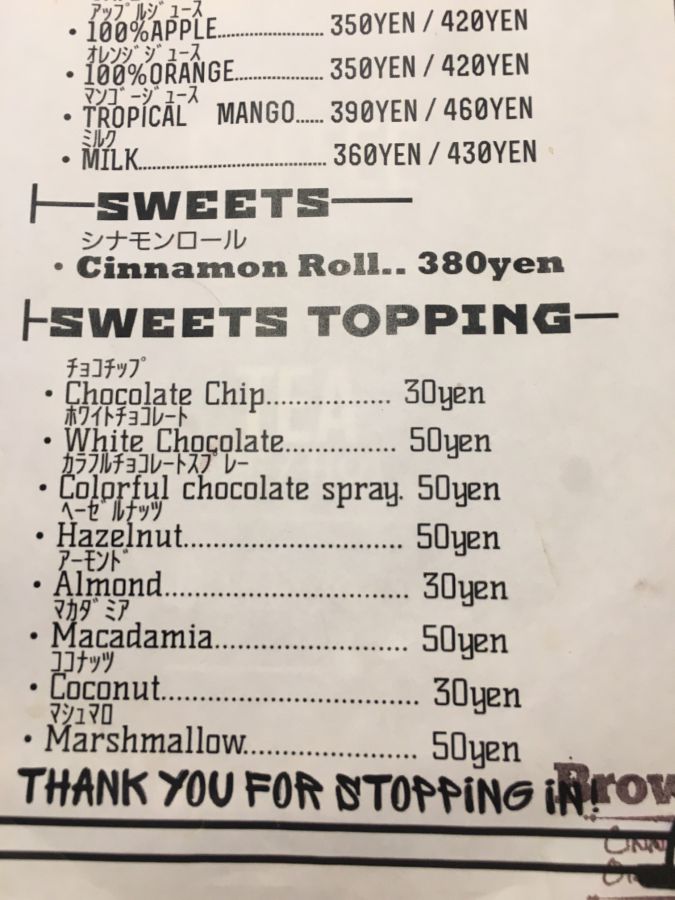 プレーンの「シナモンロール」自体は、甘さ控えめなので、甘いものが好きという方は、トッピングで調節してもいいですね。